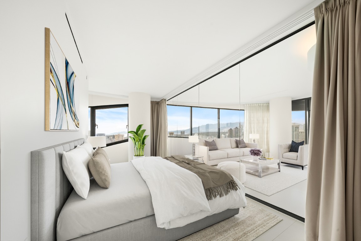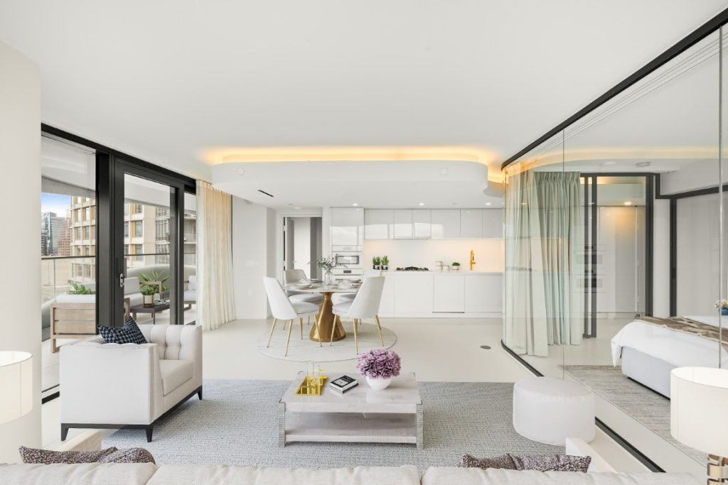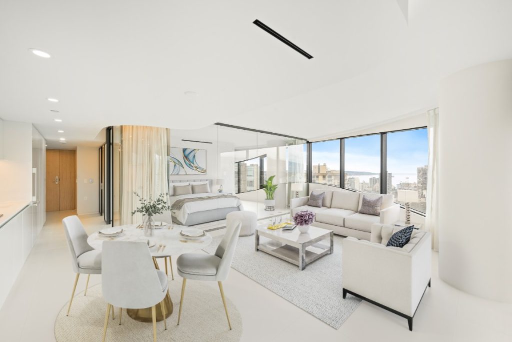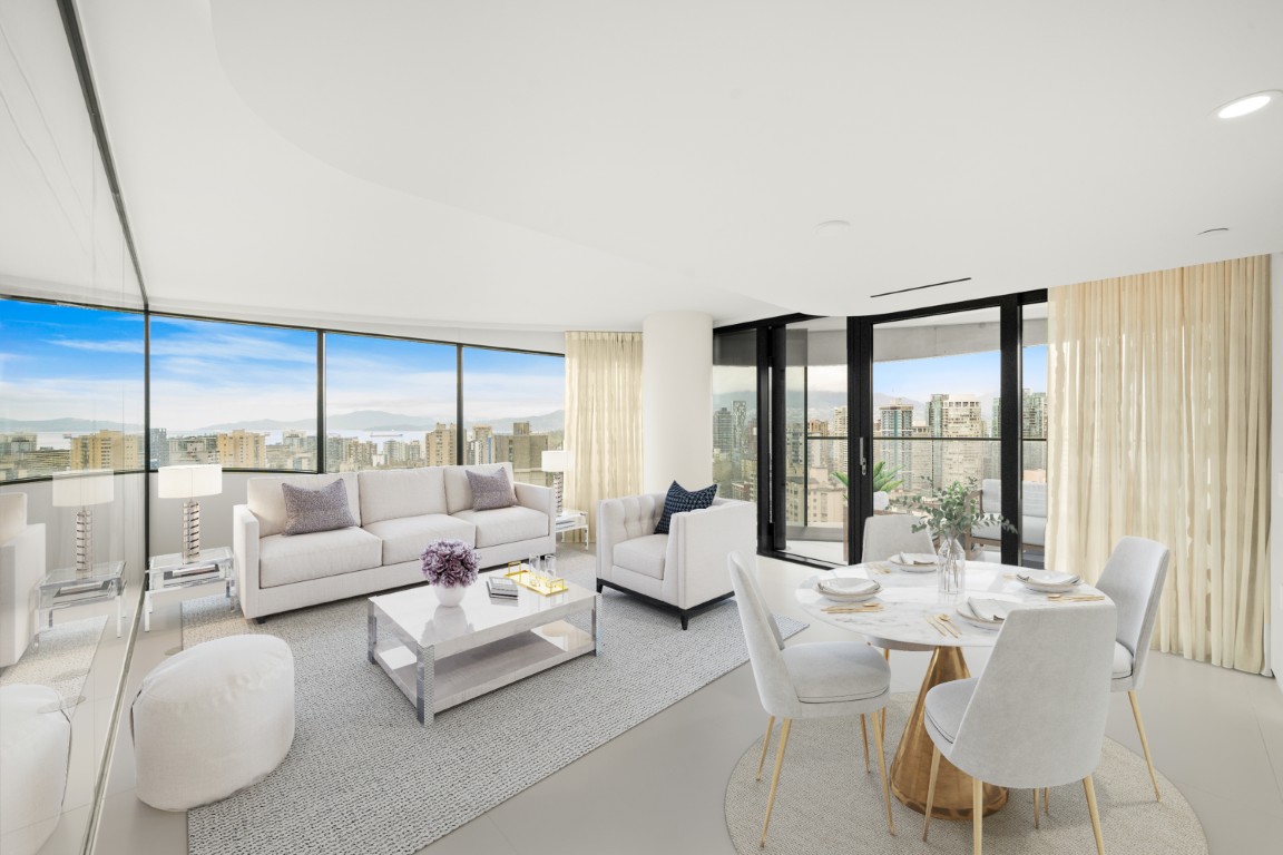 FIRST MONTHS RENT FREE! The Butterfly by Westbank, designed by Bing Thom Architects, is a striking new addition to downtown Vancouver’s skyline. This BRAND NEW 2-bedroom, 2-bathroom unit on 21st floor spans 1,336 sq. ft., with 1,181 sq. ft. of interior living and 185 sq. ft. of exterior space. The custom interior includes a eucalyptus veneered front door, large white porcelain flooring, and an Italian-crafted kitchen with Miele appliances. Floor-to-ceiling sheer drapery and curved glass walls enhance the light-filled space. LEED Gold certified, the building excels in energy efficiency and water conservation. Amenities include a 24-hour concierge, sky spa pool, gym, and a $1 million Fazioli piano. 1 Parking Stall, 1 Storage, 1 Bicycle Storage.