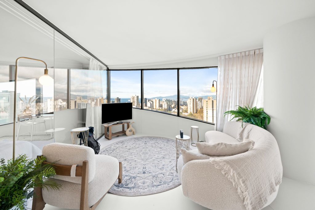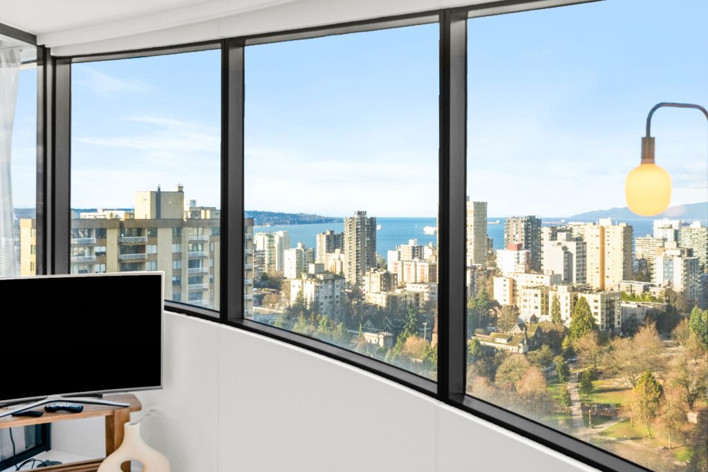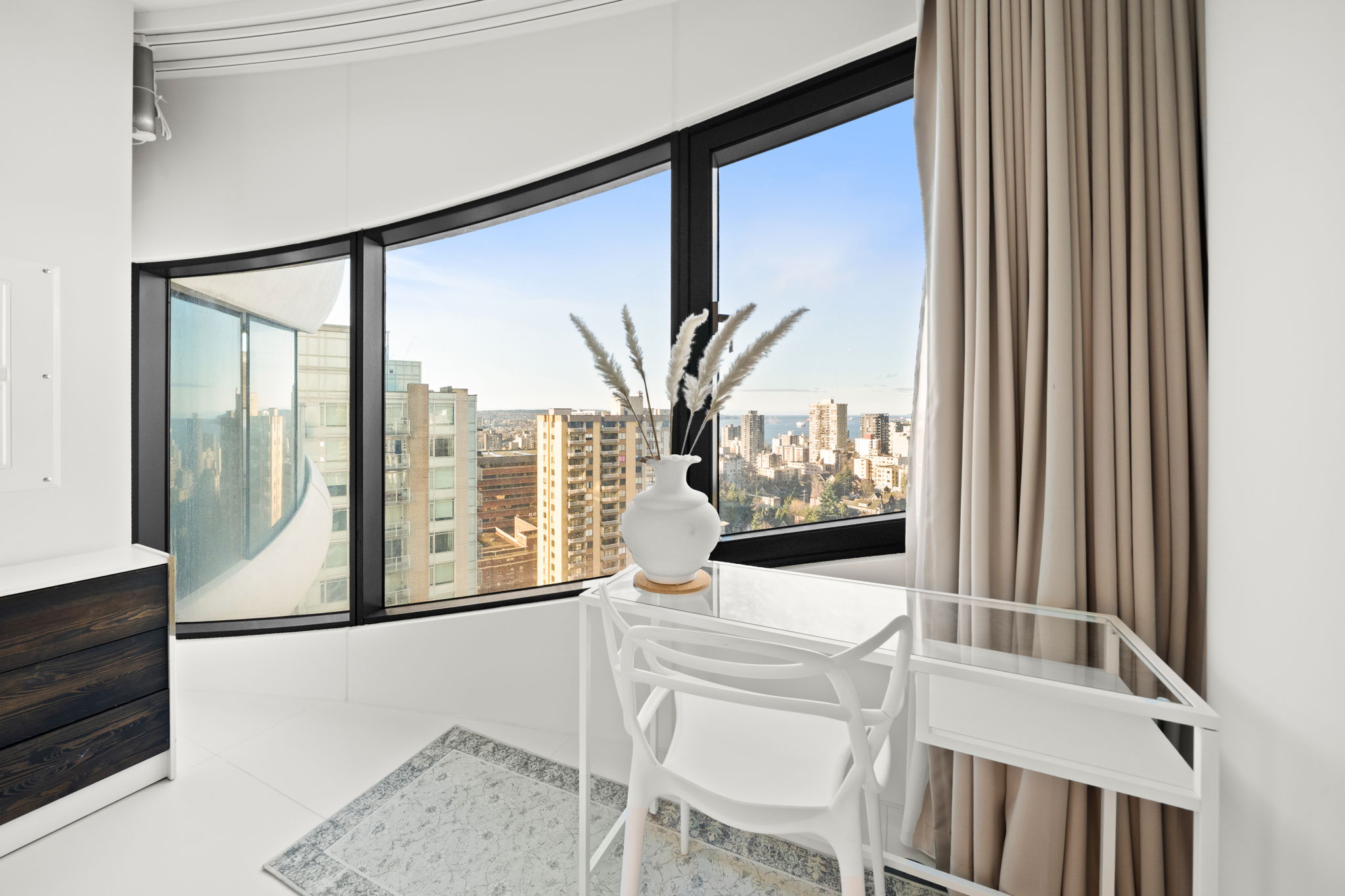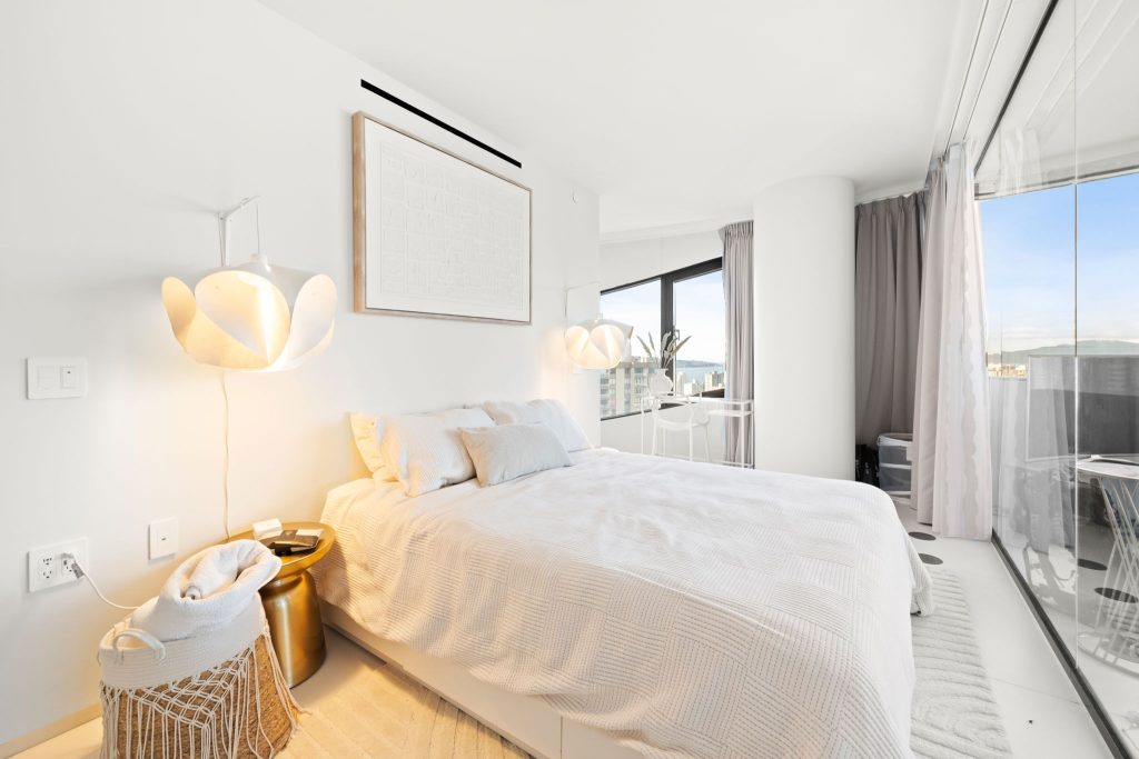The Butterfly by Westbank, designed by Bing Thom Architects, is a striking new addition to downtown Vancouver’s skyline. This FURNISHED 2-bedroom, 2-bathroom unit on 21st floor spans 1,336 sq. ft., with 1,181 sq. ft. of interior living and 185 sq. ft. of exterior space. The custom interior includes a eucalyptus veneered front door, large white porcelain flooring, and an Italian-crafted kitchen with Miele appliances. Floor-to-ceiling sheer drapery and curved glass walls enhance the light-filled space. LEED Gold certified, the building excels in energy efficiency and water conservation. Amenities include a 24-hour concierge, sky spa pool, gym, and a $1 million Fazioli piano. 1 Parking Stall, 1 Storage, 1 Bicycle Loop.