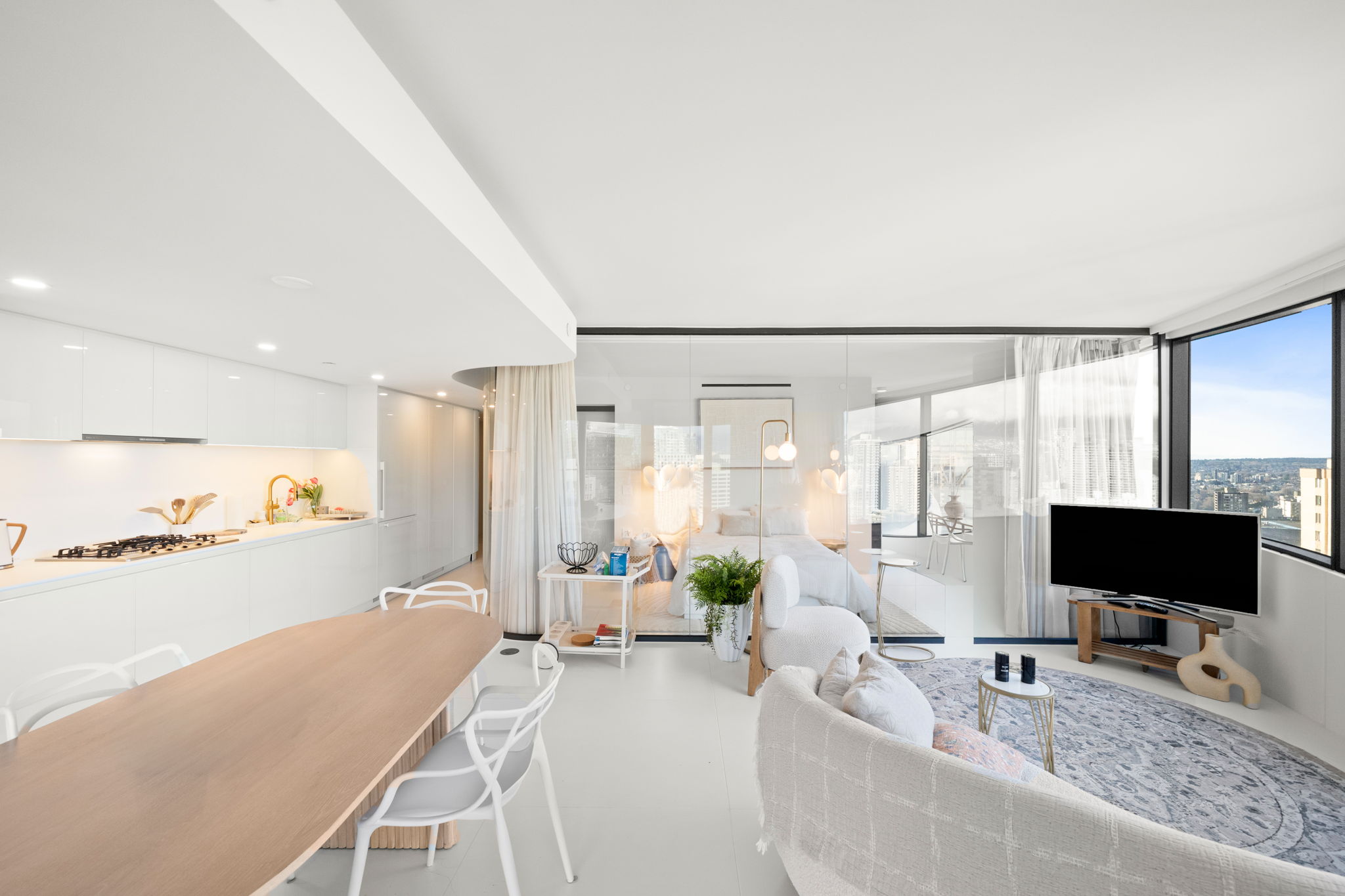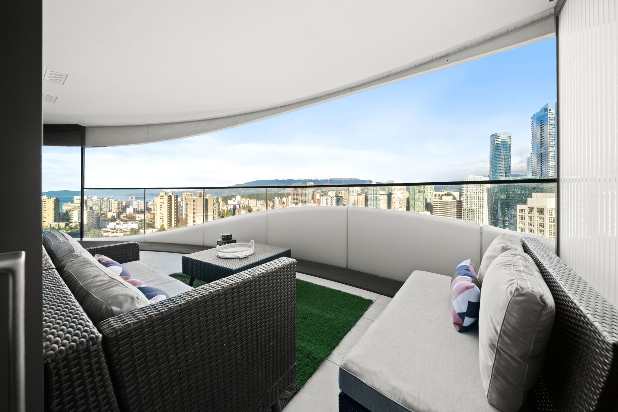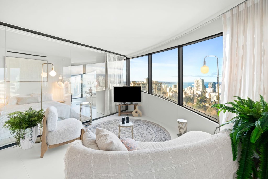 The Butterfly by Westbank, designed by Bing Thom Architects, is a striking new addition to downtown Vancouver’s skyline. This FURNISHED 2-bedroom, 2-bathroom unit on 21st floor spans 1,336 sq. ft., with 1,181 sq. ft. of interior living and 185 sq. ft. of exterior space. The custom interior includes a eucalyptus veneered front door, large white porcelain flooring, and an Italian-crafted kitchen with Miele appliances. Floor-to-ceiling sheer drapery and curved glass walls enhance the light-filled space. LEED Gold certified, the building excels in energy efficiency and water conservation. Amenities include a 24-hour concierge, sky spa pool, gym, and a $1 million Fazioli piano. 1 Parking Stall, 1 Storage, 1 Bicycle Loop.