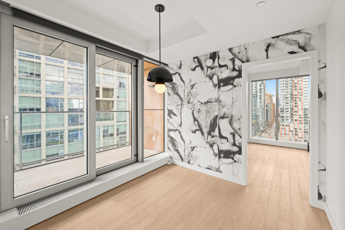 This 2-bed, 2-bath unfurnished home in the iconic Vancouver House offers 1,025 sq.ft. of modern living plus 159 sq.ft. of balconies with sweeping views of False Creek, English Bay, and the mountains. Features include over-height ceilings, white oak flooring, copper-clad balconies, and spa-inspired bathrooms with travertine, quartz, and BIG-designed fixtures. The sleek kitchen is equipped with Corian counters, a copper backsplash, and Miele appliances. Enjoy access to premium amenities: 24hr concierge, outdoor pool, gym, golf simulator, and resident’s lounge. Located in the vibrant Beach District, steps to shops, restaurants, art, and the seawall. 1 parking stall included!