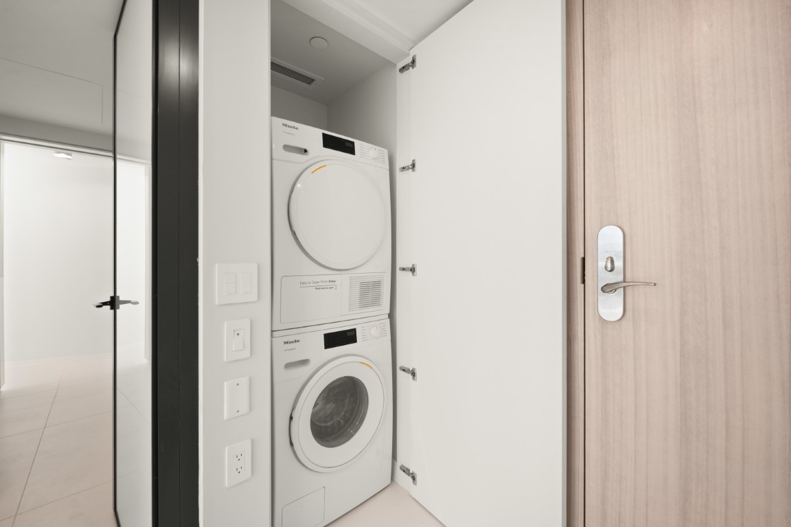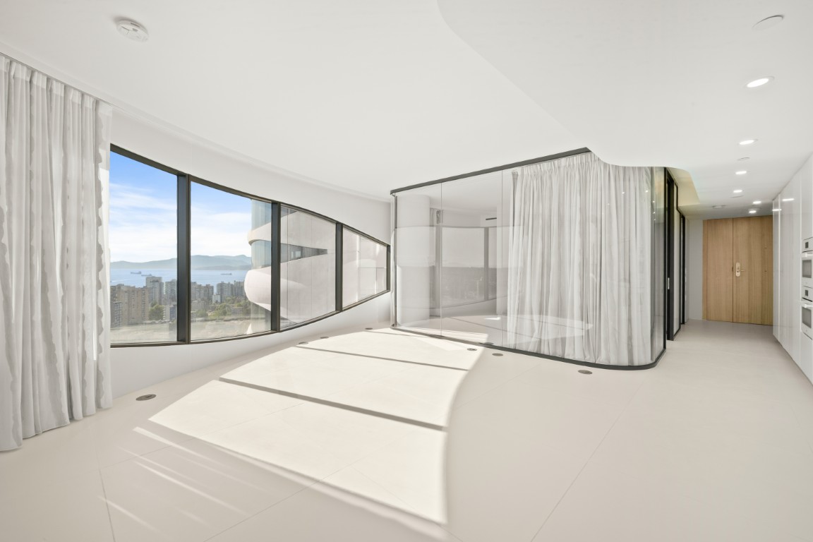 The Butterfly, a striking new addition to downtown Vancouver’s skyline. This world-class building features 331 one-of-a-kind homes. This BRAND NEW 2-bedroom, 2-bathroom unit on 29th floor with 1,065 sq. ft. of interior living and 1,250 Sq. Ft. of total living space offers a luxury living in one of the iconic buildings in Vancouver. The custom interior includes a eucalyptus veneered front door, large white porcelain flooring, and an Italian-crafted kitchen with Miele appliances. Floor-to-ceiling sheer drapery and curved glass walls enhance the light-filled space. LEED Gold certified, the building excels in energy efficiency and water conservation. Amenities include a 24-hour concierge, sky spa pool, gym, and a $1 million Fazioli piano. 1 Parking Stall, 1 Storage, 1 Bicycle Storage.