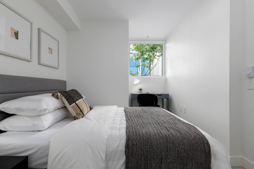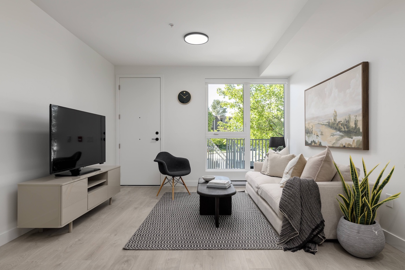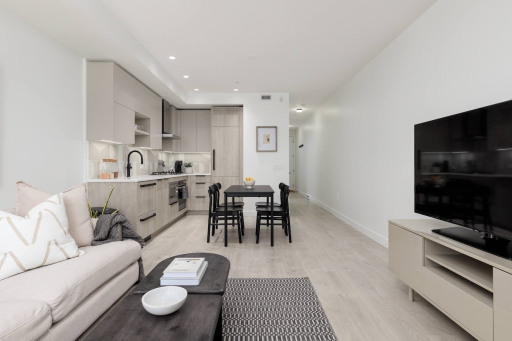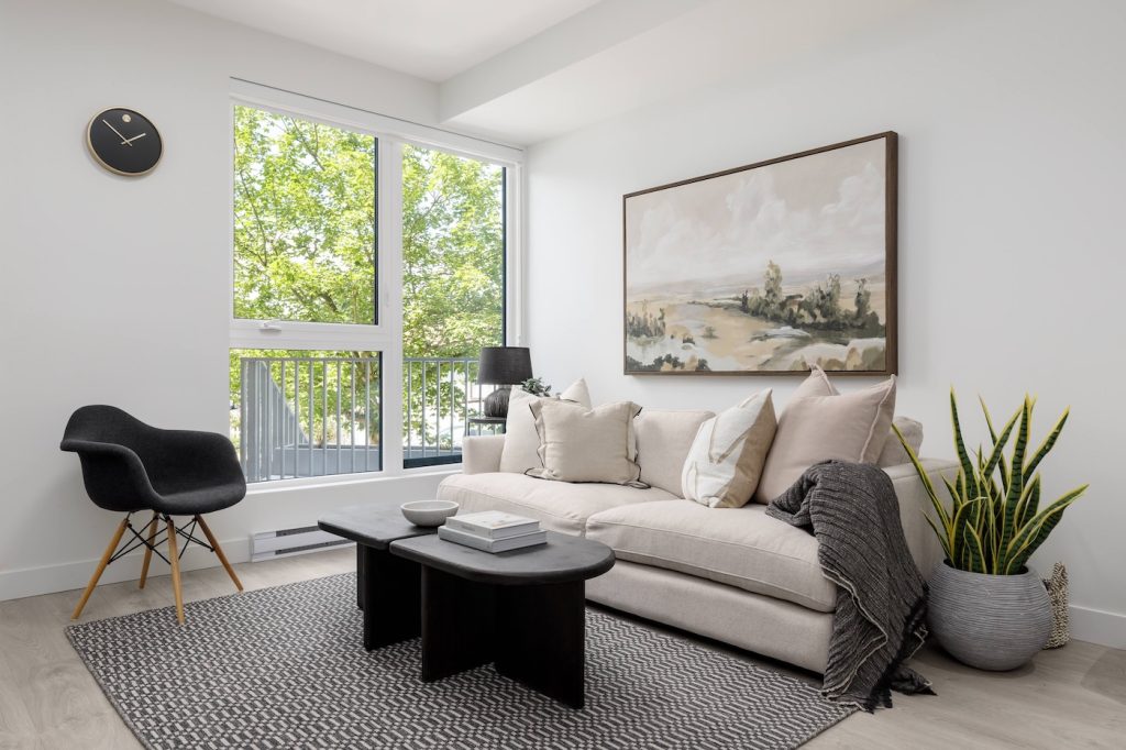 E15 JUST OFF MAIN by OpenForm Winner of the UDI Award for Excellence in Ground-Oriented Housing 2024. This modern, furnished or unfurnished 1-bed + den, 1-bath home, designed by MA+HG Architects, features interiors by Cristina Oberti with large windows that flood the space with natural light. The kitchen includes a gas cooktop, Fisher & Paykel appliances, and ample storage. The unit also boasts hardwood floors, stylish black fixtures in the washroom and kitchen, and art by Scott Sueme on the exterior. Located just steps from Main Street and minutes from downtown, E15 blends modern design with a creative edge. Ready to move in and make it your own!