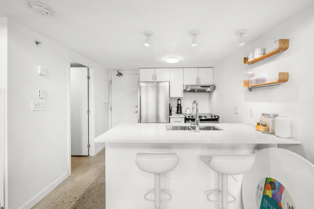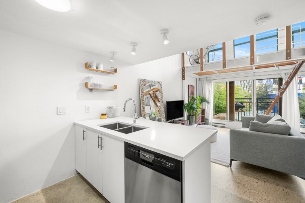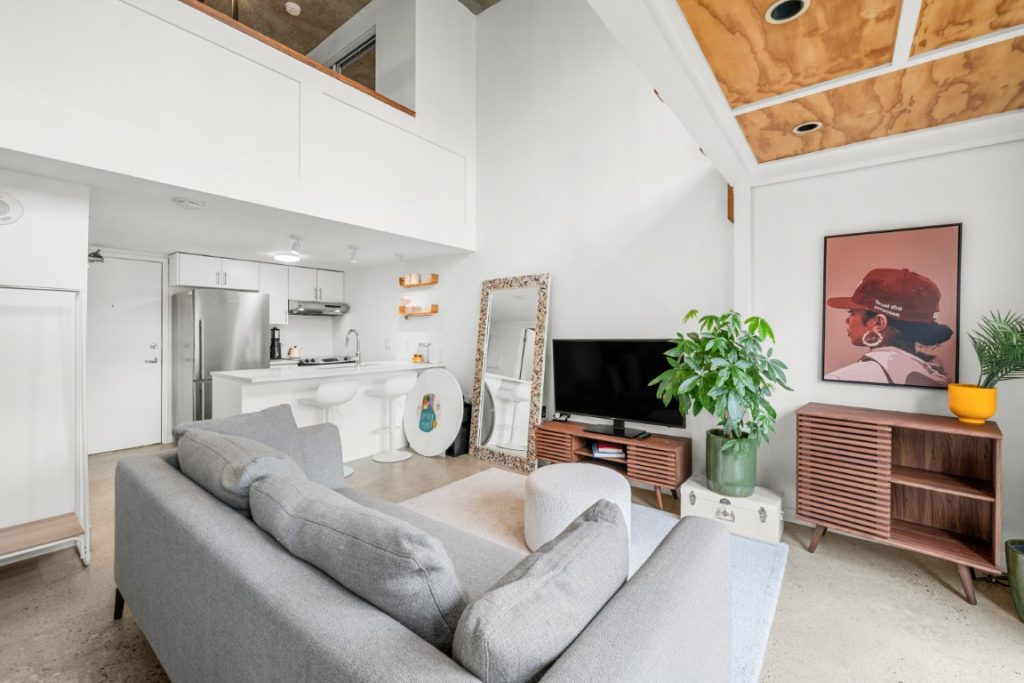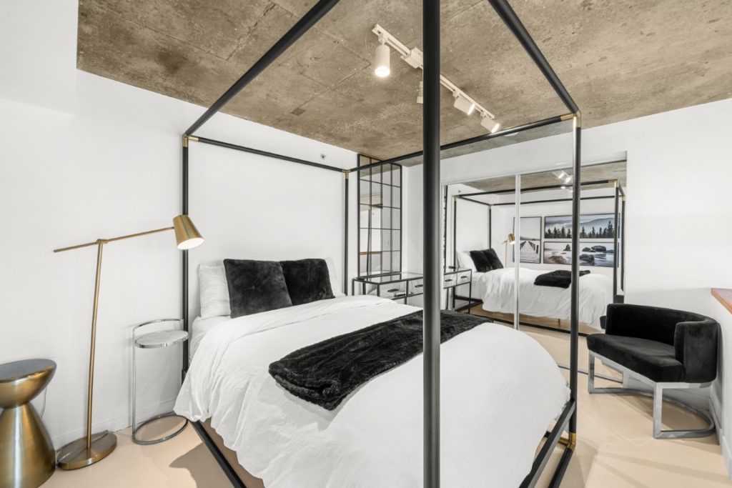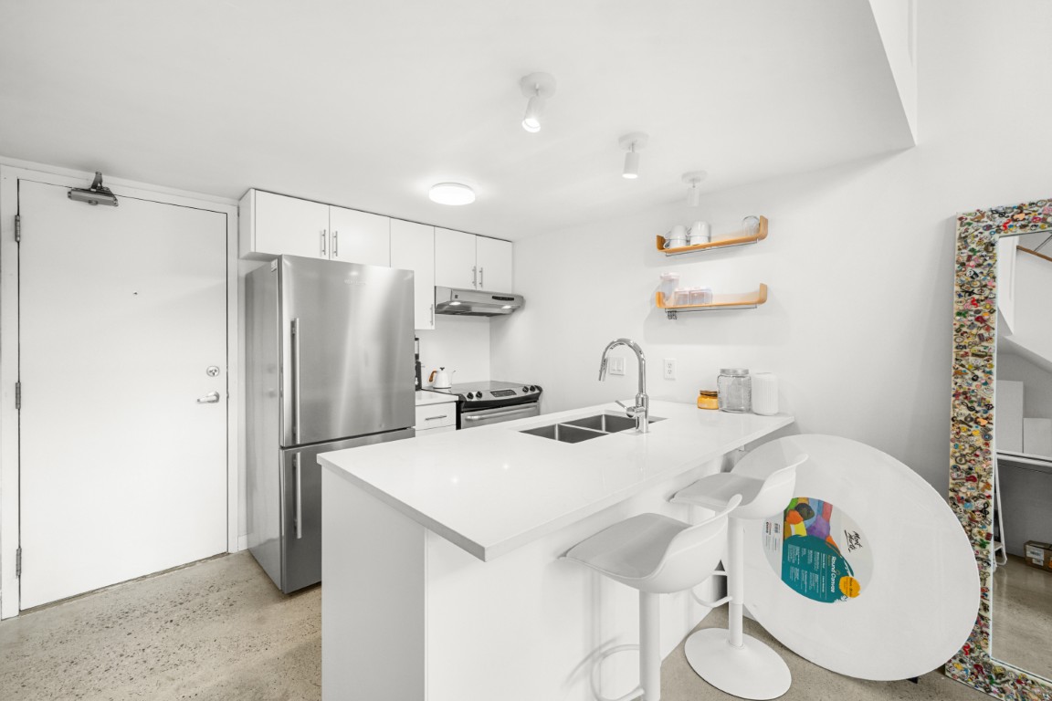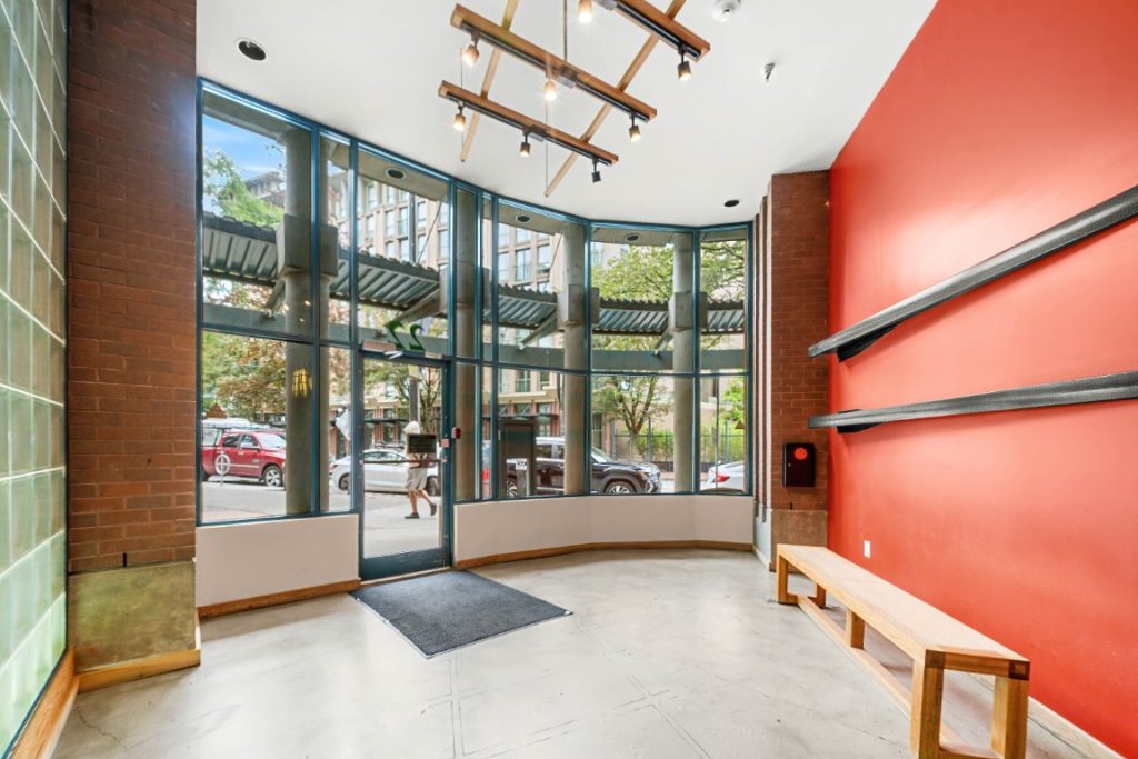 Welcome to the iconic Van Horne Lofts in Gastown! This fully furnished concrete loft offers soaring 16 ft. ceilings and double-height windows, showcasing beautiful Northwest city views of Harbour Centre and the North Shore Mountains. The spacious open layout includes a secondary loft/office space with a drop-down staircase, perfect for working from home. Features include hardwood and concrete floors, built-in storage/closet space, stainless steel railings, and the convenience of in-suite laundry. Enjoy your morning coffee or evening glass of wine on the balcony with stunning views. One secured underground parking stall is included. Located in the heart of historic Gastown, you’ll be steps away from Vancouver’s trendiest restaurants, cafes, and bars.