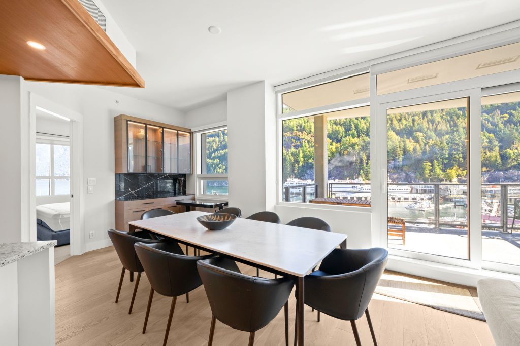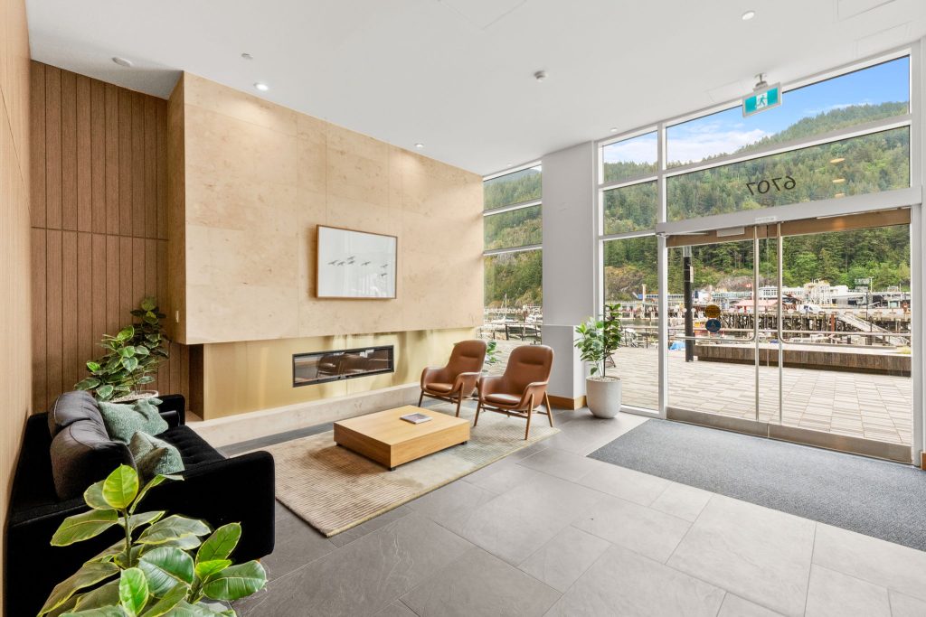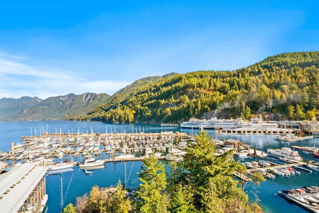 Welcome to Horseshoe Bay Sanctuary by Westbank — a luxury waterfront community inspired by Portofino and completed in 2022. Nestled just steps from local favorites like Olive & Anchor and Flour Bakery, this exclusive development offers easy access to downtown Vancouver and Whistler. This elegant 2-bedroom + den, 3-bathroom residence features 1,772 sq. ft. of interior living and 226 sq. ft. of outdoor space, showcasing breathtaking marina and mountain views. The chef-inspired kitchen includes Miele appliances, Corian countertops, and a copper satin backsplash. A limestone fireplace, wood flooring, and over-height ceilings add warmth and sophistication throughout. Residents enjoy world-class amenities, including a 24-hour concierge, state-of-the-art fitness center, and boat house access.