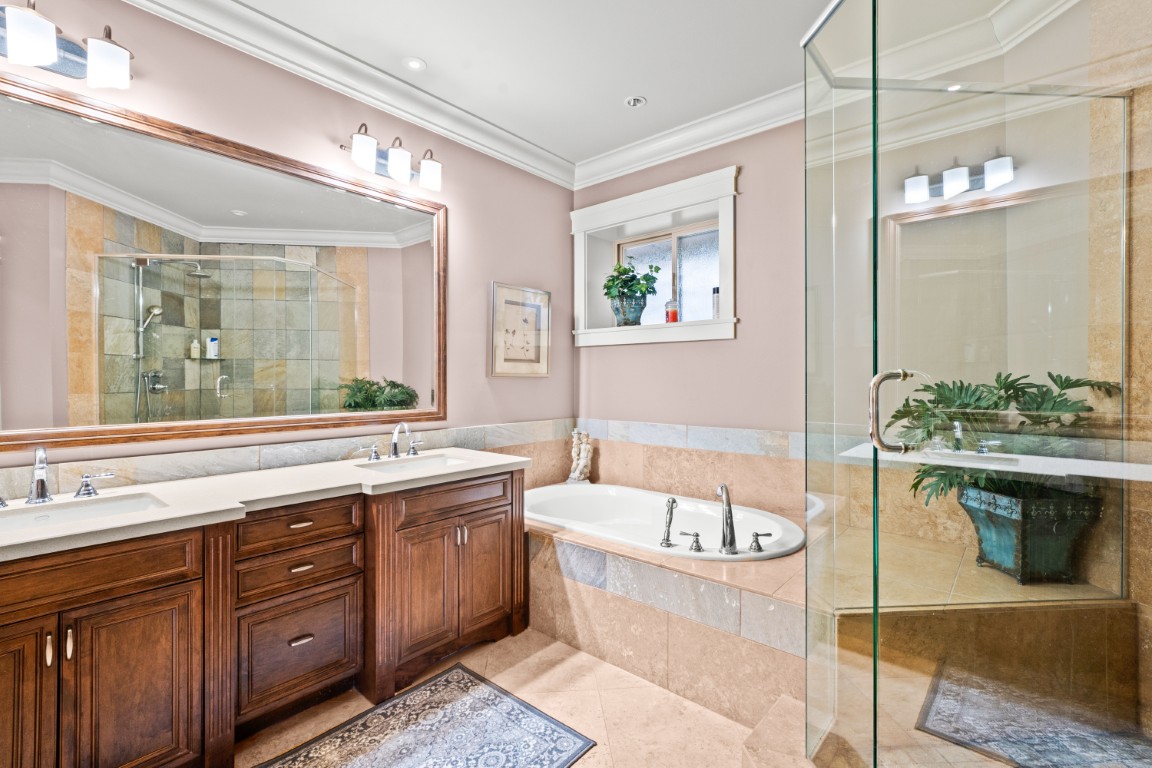 Estate style home in the British Properties! This classic-style 9,113 Sq. Ft., 7 bed, 8 bath home sits on a prestigious, double-gated over, 26,870 Sq. Ft. lot with breathtaking city, mountain, and ocean views. Designed with soaring ceilings and impeccable craftsmanship, this home offers grand living spaces perfect for luxury living. The gourmet chef’s kitchen boasts high-end appliances, a large island, and seamless flow to the family room. A covered BBQ deck is ideal for outdoor dining, while a secondary master on the main adds convenience. Upstairs, five oversized bedrooms feature walk-in closets. The lower level is an entertainer’s dream, complete with a rec room, bar, theater, gym, wok kitchen, and private guest suite. A rare blend of elegance and modern amenities, this estate offers an unparalleled lifestyle in an extraordinary setting.