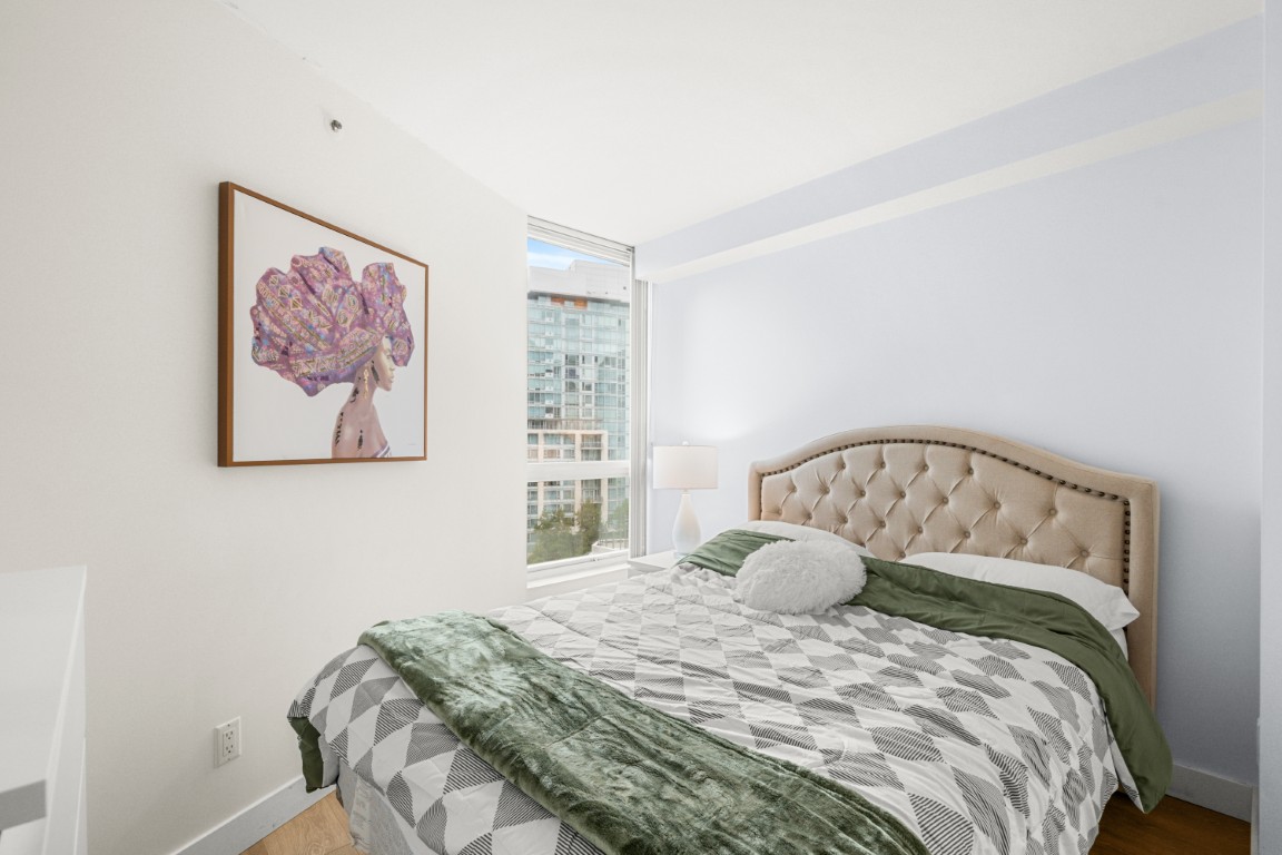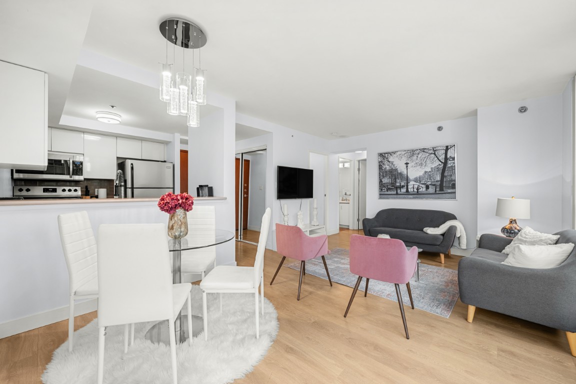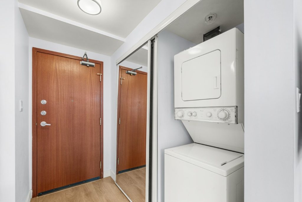 Welcome to Harbourside Park in Coal Harbour! This 589 sq. ft. furnished condo is cozy, charming, and equipped with everything you need for comfortable downtown living. The home features 1 bedroom + den, 1 bathroom, in-suite laundry, 1 parking stall, and 2 storage lockers. Residents enjoy access to outstanding amenities including an indoor pool, hot tub, fitness centre, meeting room, theatre, party rooms, and 24/7 security. Perfectly located just steps from the Seawall, Stanley Park, world-class dining, shopping, transit, and all that downtown Vancouver has to offer.