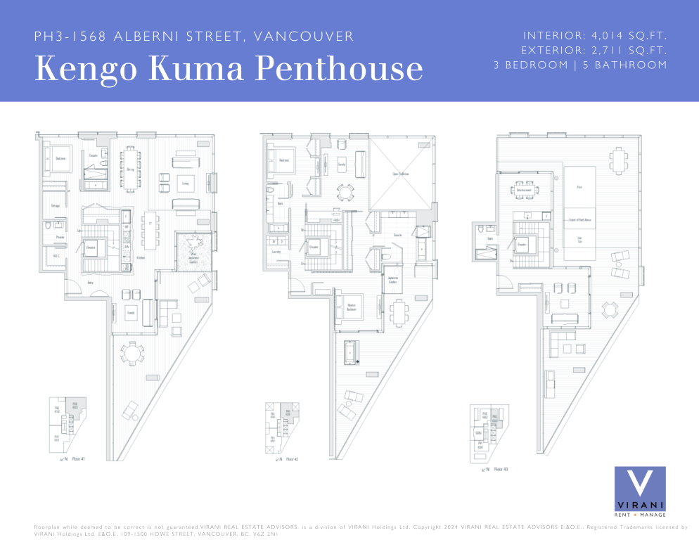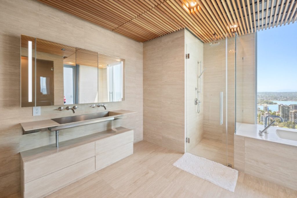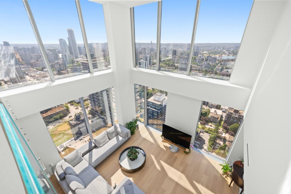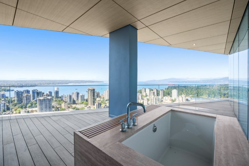 Experience the crown jewel of Alberni by world-renowned architect Kengo Kuma. This extraordinary skyhome is bathed in natural light, offering breathtaking panoramic views of Coal Harbour, the North Shore Mountains, and English Bay. The expansive living and dining area, with soaring 20-foot ceilings, sparkles with reflections from the private glass-bottom swimming pool and spa above. A dramatic open staircase clad in bleached white oak, or the private glass elevator, leads to three expansive outdoor terraces totaling over 2,200 square feet. The primary bedroom is a sanctuary with its own outdoor soaker tub, while residents enjoy the prestige of four private wine lockers, and access to world-class amenities with 24/7 concierge service.